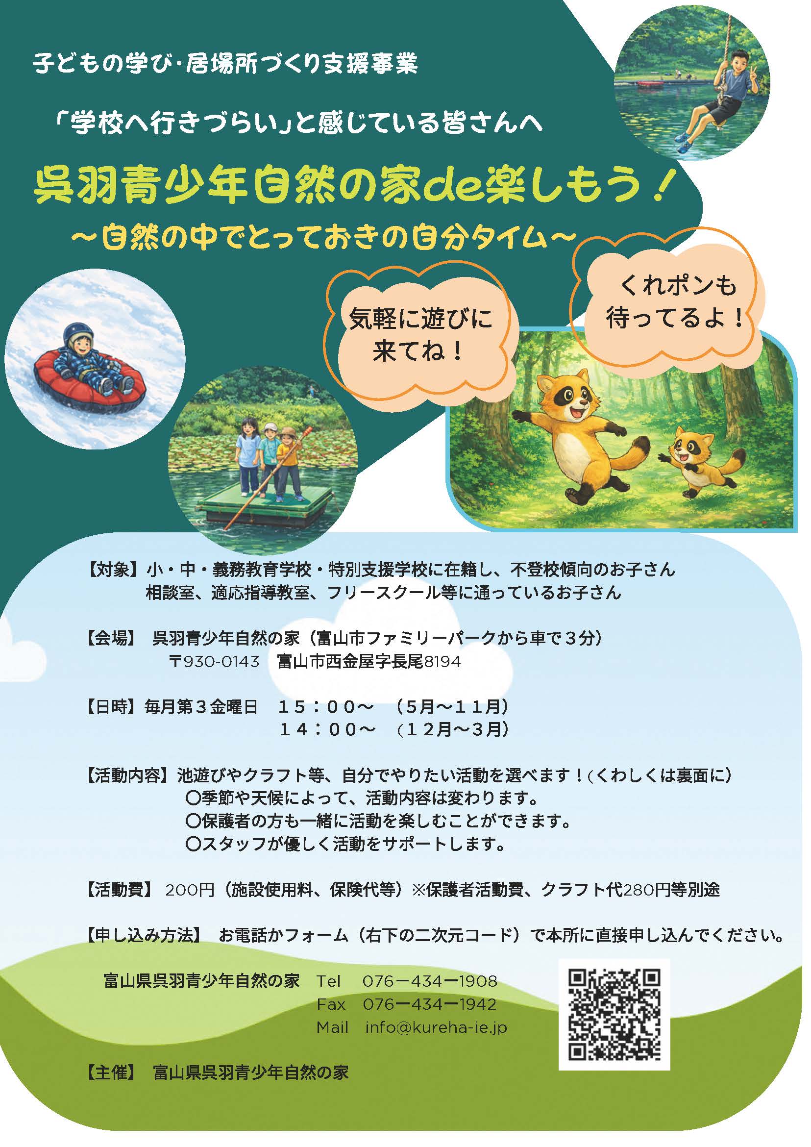 呉羽青少年自然の家de楽しもう! 参加者募集