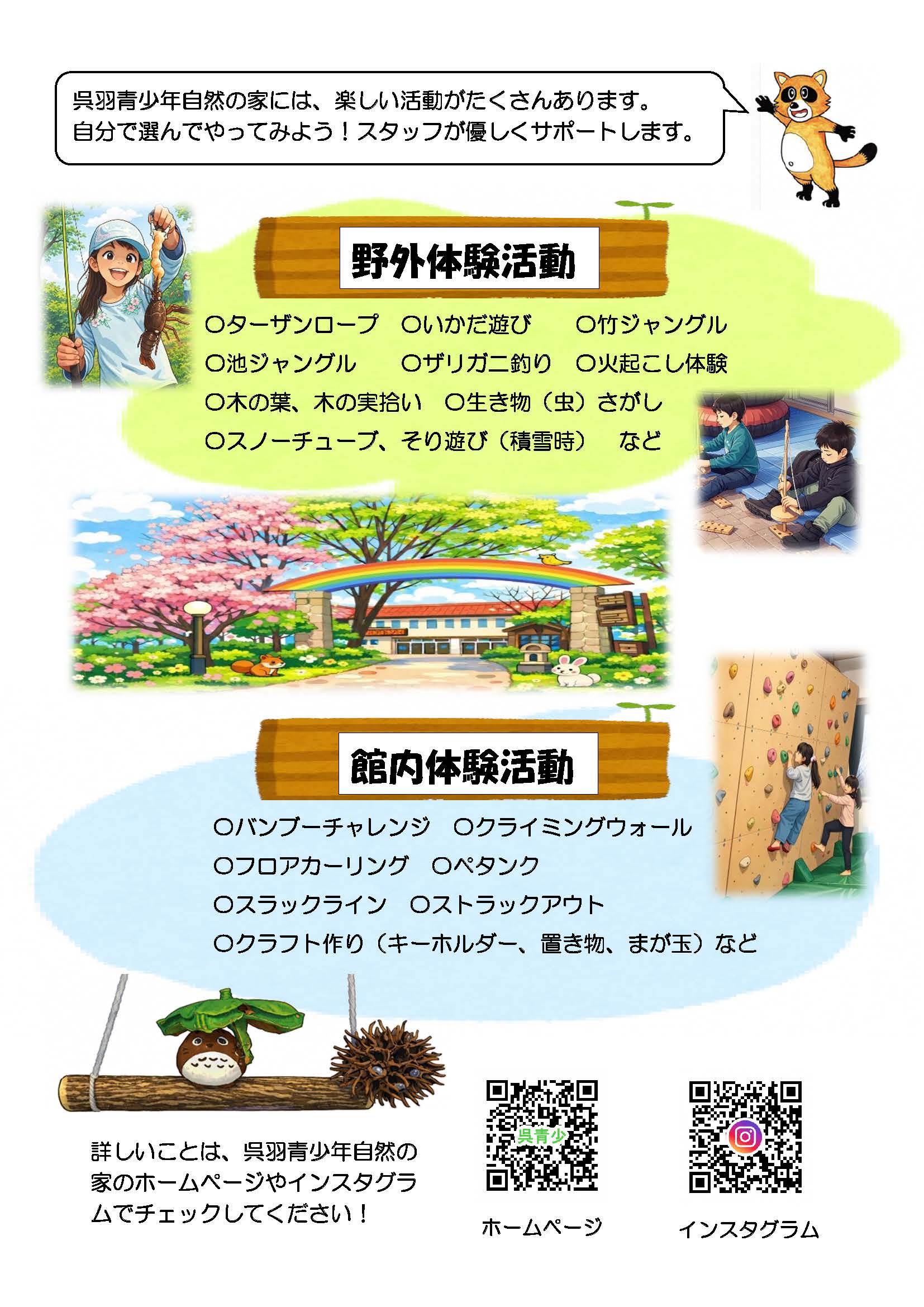 呉羽青少年自然の家de楽しもう! 参加者募集