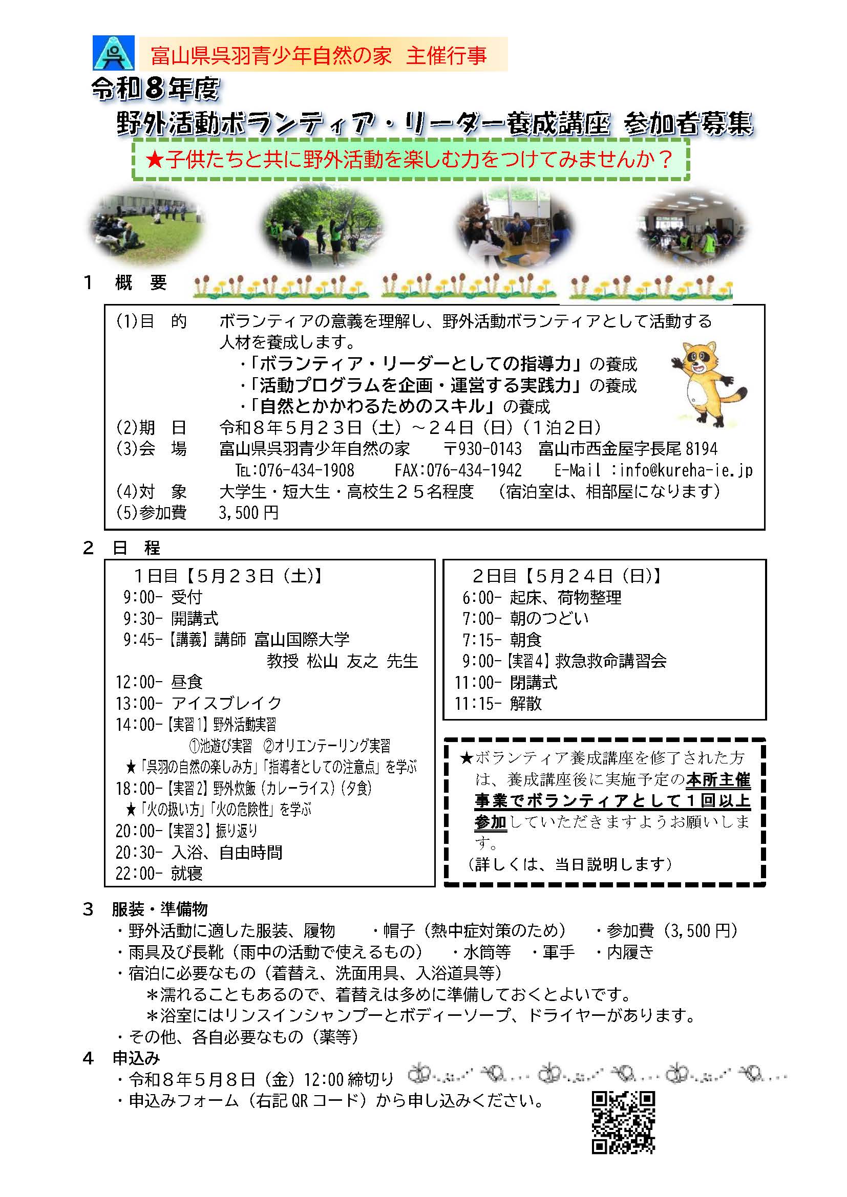 令和8年度 野外活動ボランティア・リーダー養成講座 参加者募集